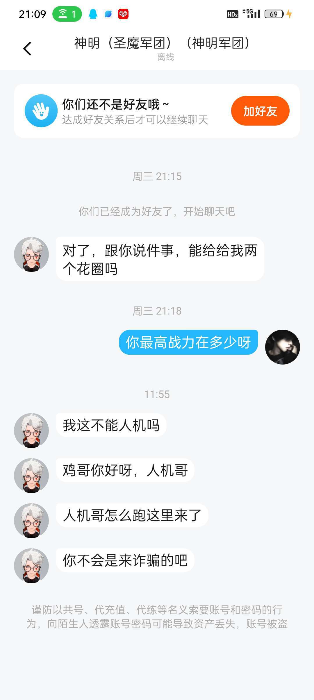 有没有人带我玩儿一下?先加我好友。下星期五才能玩儿。要记得我哦