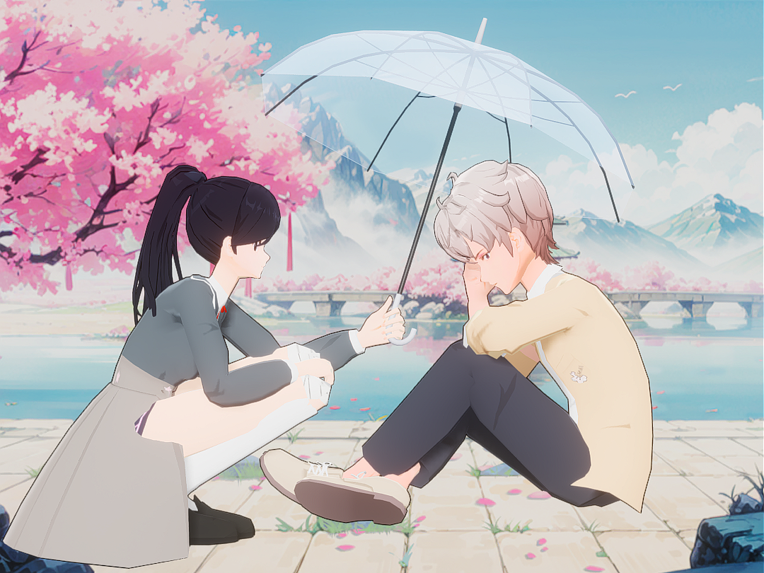 我为你撑伞。希望你不要再伤心了