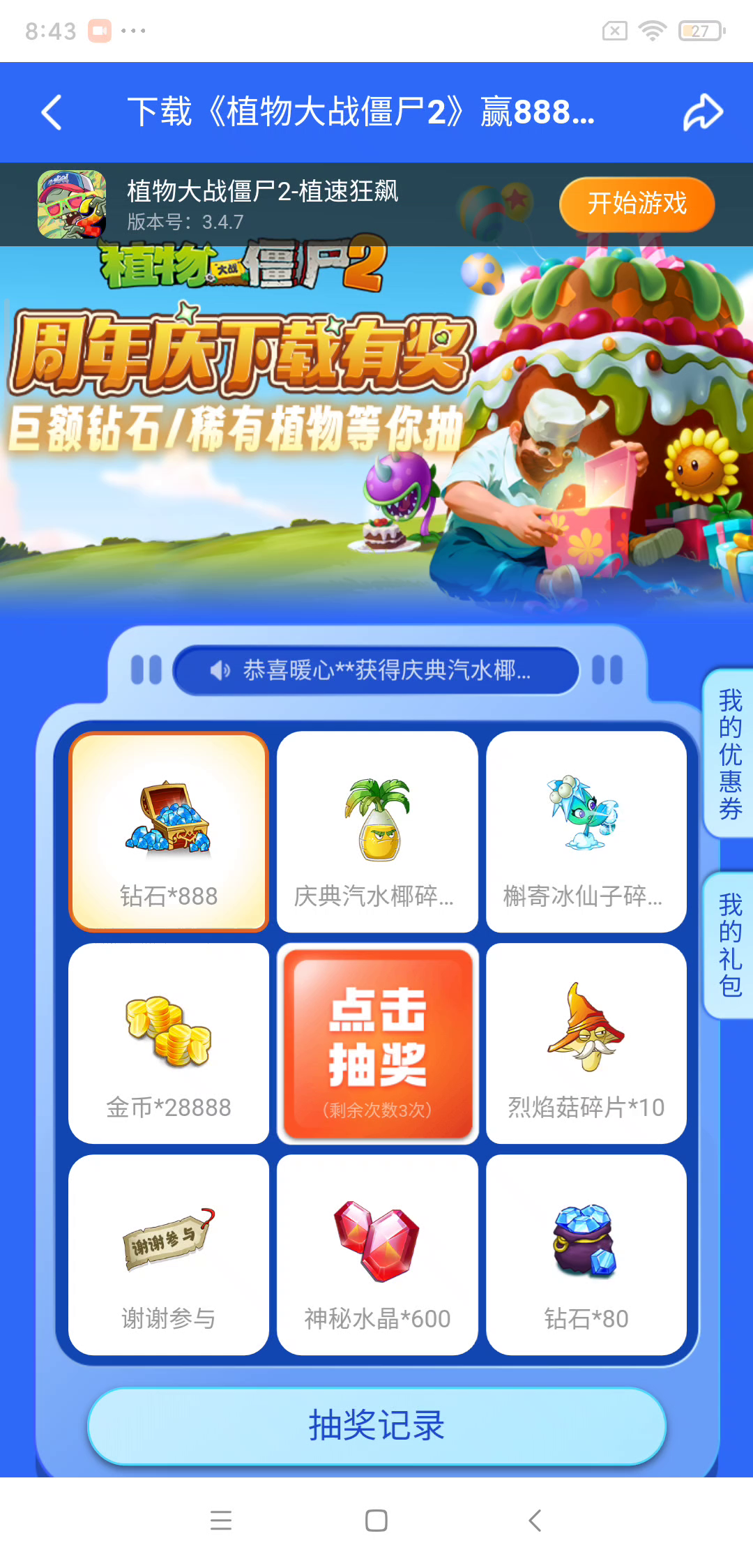 爆率太低,建议提高一下抽奖概率