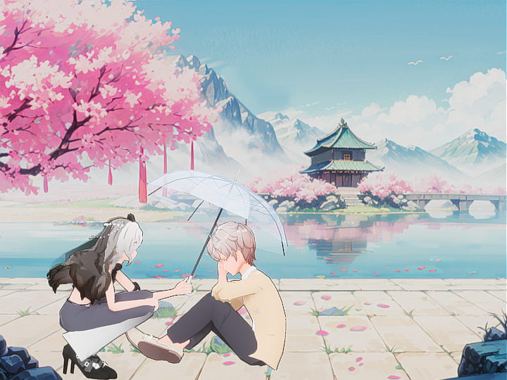 在樱花下的撑伞,哭泣