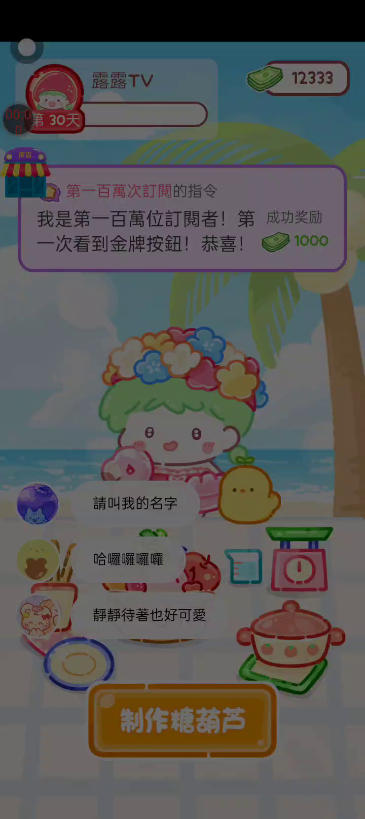 - 冰淇淋摊刚在迷你超市开张了! - 哇 - 高级冰淇淋?!观看广告可获得随机免费一球! - 五种口味?给我最好吃的一个! 制作自己专属的糖葫芦,挑战吃播ASMR吧! 「你进行草莓糖葫芦吃播的话,我就赞助100元。」 「脆口的声音太迷人了(°θ°)」 由于客人都被最近新开的许多糖葫芦店家抢走,曾经号称糖葫芦达人的父母因此卧病在床。 继承父母店面的主角露露开始糖葫芦吃播来宣传店面。 直到成为真正的糖葫芦达人那一天! 「今天我也要开始糖葫芦直播罗!( •o• )」 [串材料] 只有新鲜的水果的话,很难以一名吃播实况主存活下来。还要有松饼、地球软糖、青阳辣椒!利用奇特的材料制作糖葫芦吧。 [裹糖衣] 将材料串满竹签的话,就放进锅子搅动吧。唯有利用达人的秘法,才能裹出又薄又脆的糖衣。 [即时吃播] 咔哒咔哒!今天的吃播也大成功。热烈的聊天内容看起来反应也不错。看来得利用完成观众任务得到的赞助金来买新材料了! 来,准备好了吧?现在就马上挑战成为糖葫芦达人吧!