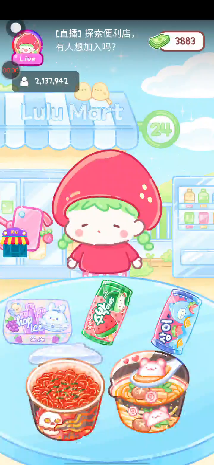 - 冰淇淋摊刚在迷你超市开张了! - 哇 - 高级冰淇淋?!观看广告可获得随机免费一球! - 五种口味?给我最好吃的一个! 制作自己专属的糖葫芦,挑战吃播ASMR吧! 「你进行草莓糖葫芦吃播的话,我就赞助100元。」 「脆口的声音太迷人了(°θ°)」 由于客人都被最近新开的许多糖葫芦店家抢走,曾经号称糖葫芦达人的父母因此卧病在床。 继承父母店面的主角露露开始糖葫芦吃播来宣传店面。 直到成为真正的糖葫芦达人那一天! 「今天我也要开始糖葫芦直播罗!( •o• )」 [串材料] 只有新鲜的水果的话,很难以一名吃播实况主存活下来。还要有松饼、地球软糖、青阳辣椒!利用奇特的材料制作糖葫芦吧。 [裹糖衣] 将材料串满竹签的话,就放进锅子搅动吧。唯有利用达人的秘法,才能裹出又薄又脆的糖衣。 [即时吃播] 咔哒咔哒!今天的吃播也大成功。热烈的聊天内容看起来反应也不错。看来得利用完成观众任务得到的赞助金来买新材料了! 来,准备好了吧?现在就马上挑战成为糖葫芦达人吧!