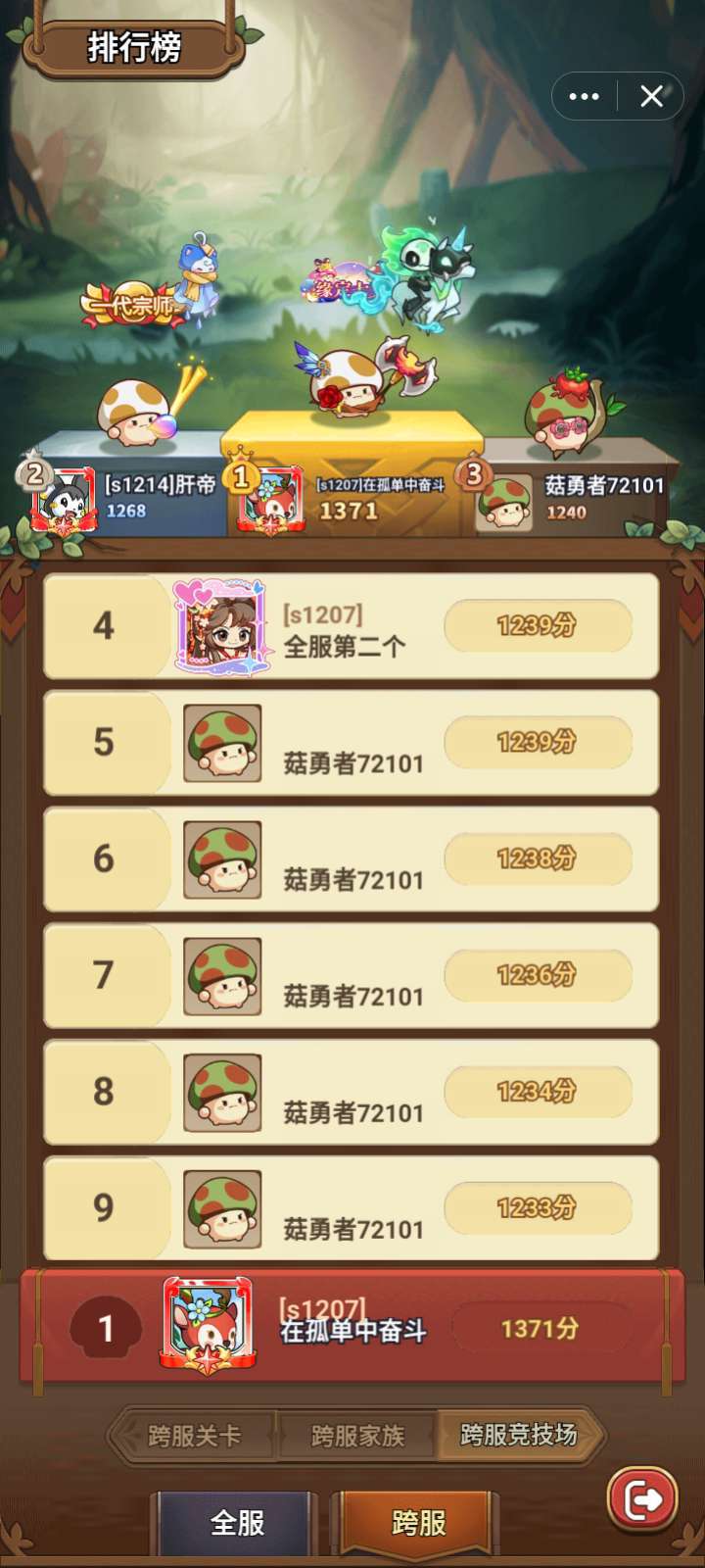 冒险大作战1207、1209、1211、1214区服强者数据: