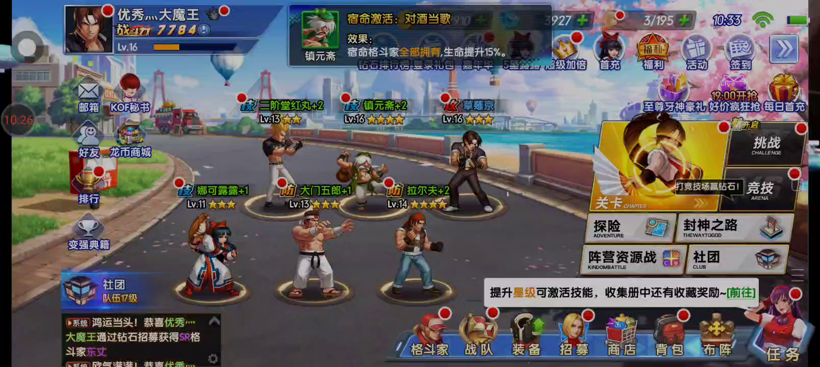 全新IP大作《拳魂觉醒》由正版《拳皇》IP授权,联动《侍魂》及《月华剑士》两大知名人气IP,更有【橘右京、娜可露露、霸王丸】的倾情加入,全新演绎拳皇全明星世界。 游戏涵盖了草薙京、特瑞、不知火舞等“拳皇”系列经典人气角色及橘右京、娜可露露等知名人物,独特核心战斗及创新竞技玩法使游戏区别于传统IP游戏,八大流派,二十余个战队,数十格斗家等待你收集,为屏幕前的你带来更新鲜的游戏体验。 【特色玩法】 一、拳皇侍魂系列IP剧情角色纯还原 以三神器家族及大蛇的恩怨故事为背景,橘右京等侍魂人物穿越而来,正逢拳皇大赛开办,一场跨时空的较量正在上演 二、卡牌标配升级,经典基础再创新 一改传统卡牌游戏回合制,创新地使用即时战斗形式,爽快的连击操作,拥有华丽特效及战略打断的必杀技使战斗更加激烈 三、系统融合打磨,多种乐趣一次体验 主角剧情模式一币通关,抢夺资源、占领城池的SLG玩法与卡牌结合......通过核心战斗创新提高游戏策略性,赋予卡牌游戏操作乐趣 四、多线养成,自由组建队伍称霸拳皇大赛 多样的养成线加丰富的培养玩法,让你随心所欲培养心爱格斗家至极限,自由组建最强战队