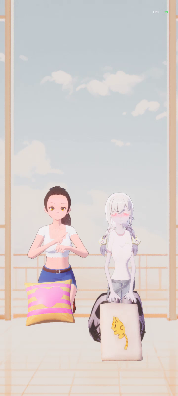姐妹一起玩枕头。舞特别好玩