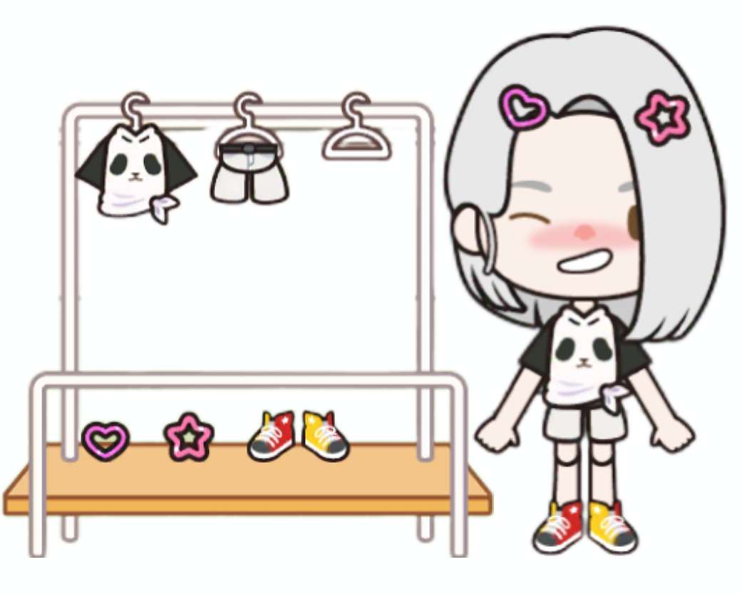 熊猫短袖上衣加上白色短裤,配上运动鞋,最后心形和星形发卡做点缀