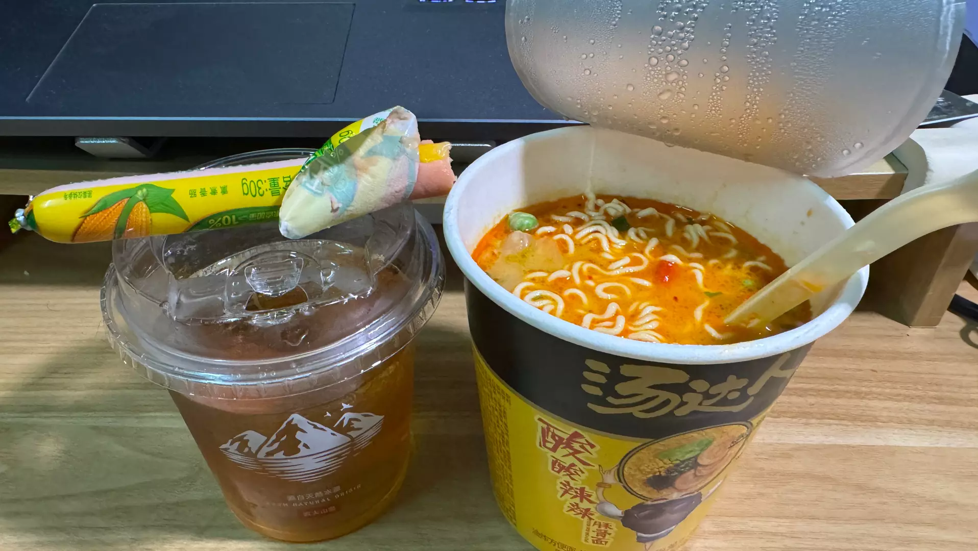 这是一则吃货宵夜分享,博主享用火鸡面搭配虎皮猪蹄、脆皮五花肉,满满都是诱人的深夜美食,让人食欲大开。