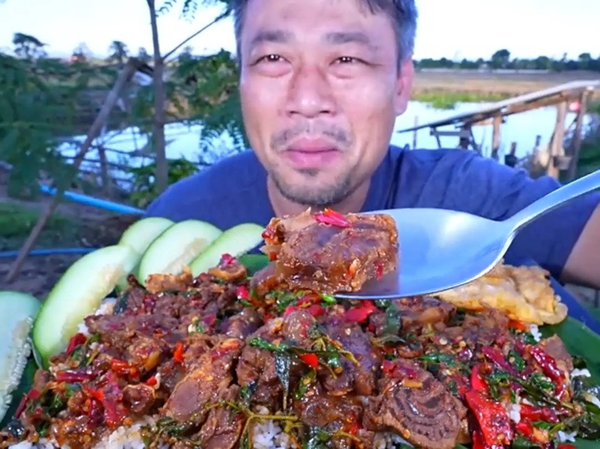 新鲜的香辣牛肉配生瓜 #美食 #吃播 #泰国吃播 #吃货