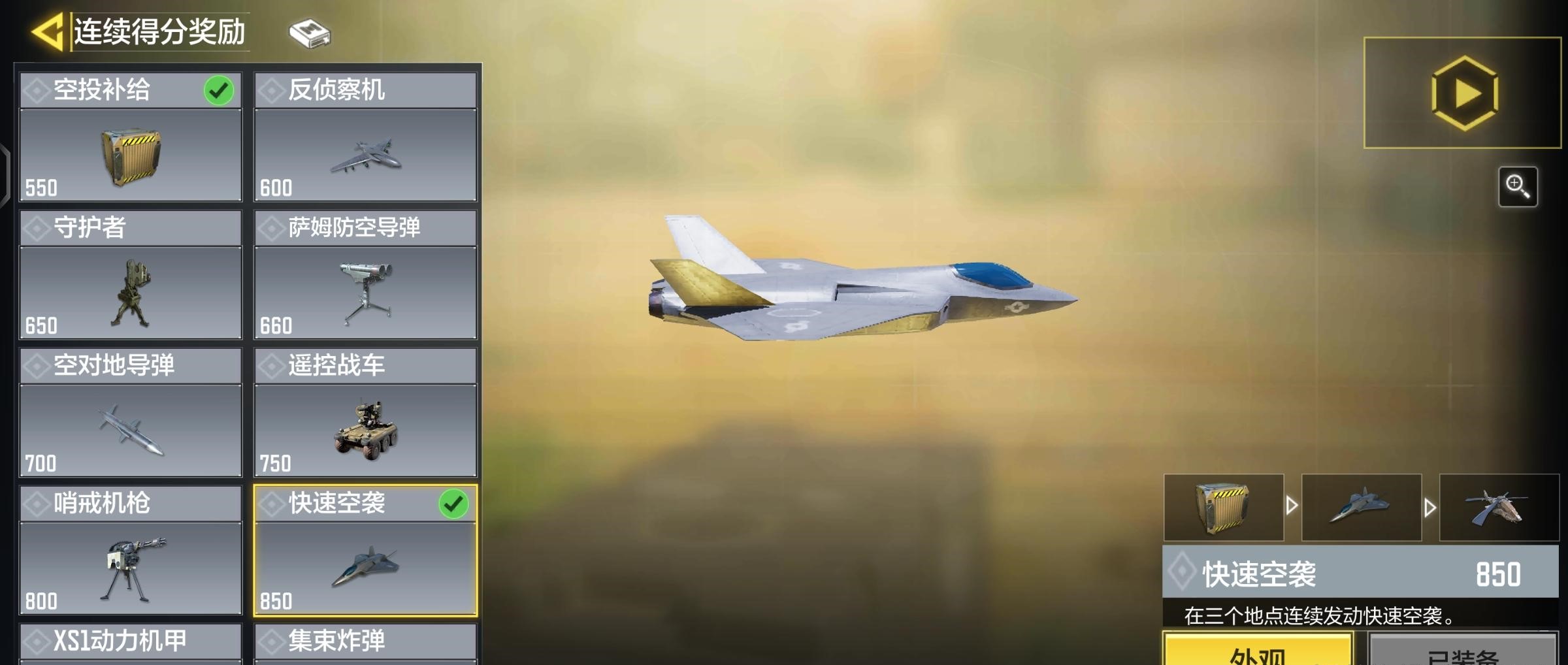 清点必备,速度嘎嘎的,分数要求也不是很高,最后就是攻击无人机,全自动打敌人谁不喜欢呢?对比聚能风暴,性价比很高的,如果是那种室内建筑我还是建议选择聚能风暴。