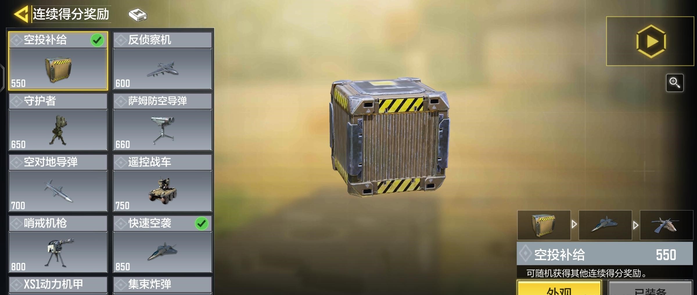 然后就是连杀技能,首先我选择了空投