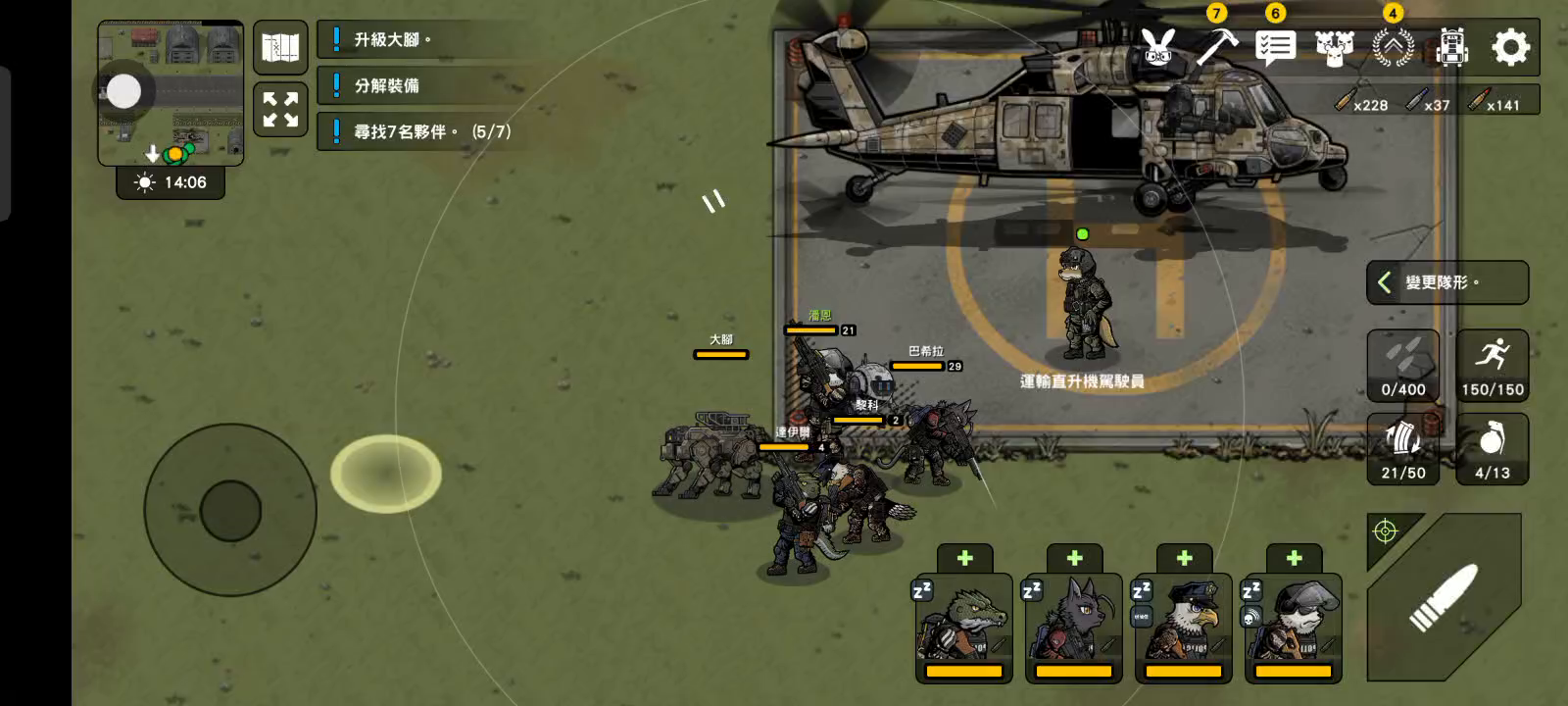 我现在已经有了直升机,然后呢已经推进到了三图,有了好几个队友了。