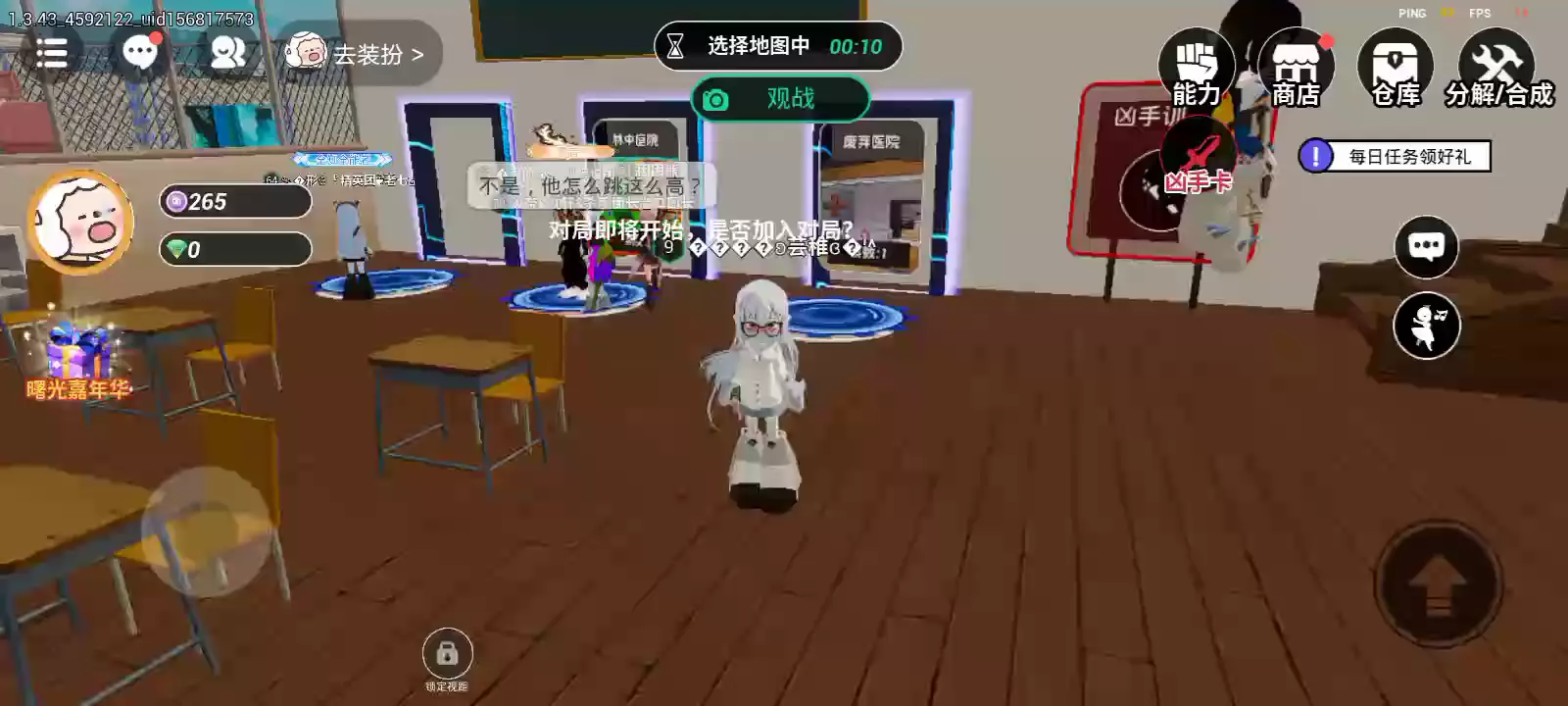 233派对精选地图 不正常小镇之超正常医院 你被人从后面捂住了口鼻,刺鼻的药水裹挟着你的意识一起坠入深渊, 当你再次睁开双眼,映入你眼帘的是完全陌生的环境。 这是一间私人医院,白天它像所有正常的医院一样,忙忙碌碌的医生,熙熙攘攘的病人,看起来没有任何异常, 伴随着夜幕降临,沉重的钟声唤醒了沉睡在这座医院的异端,展露出它本来的面目 你发现你再这所医院里无休止的循环,哪怕经历死亡,第二天依旧能看到升起的太阳。但是哪些刻进灵魂深处的恐惧和痛苦,让你不得不经历在这里小心翼翼的躲避着怪物,沟沿残喘着