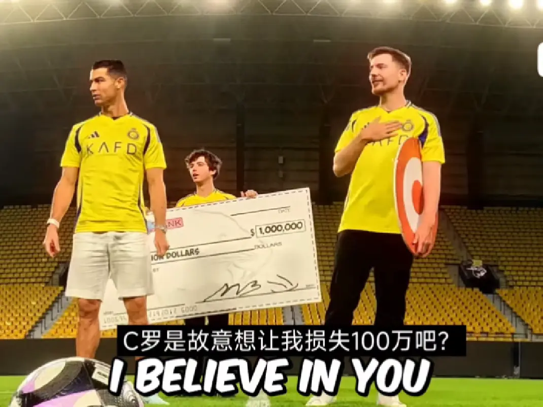 击败罗纳尔多,赢得一百万美金!(2) #野兽先生 #c罗 #挑战