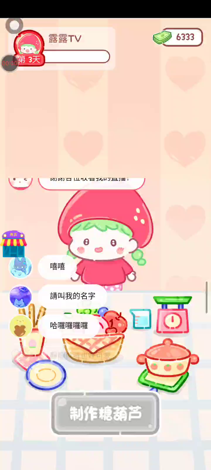 - 冰淇淋摊刚在迷你超市开张了! - 哇 - 高级冰淇淋?!观看广告可获得随机免费一球! - 五种口味?给我最好吃的一个! 制作自己专属的糖葫芦,挑战吃播ASMR吧! 「你进行草莓糖葫芦吃播的话,我就赞助100元。」 「脆口的声音太迷人了(°θ°)」 由于客人都被最近新开的许多糖葫芦店家抢走,曾经号称糖葫芦达人的父母因此卧病在床。 继承父母店面的主角露露开始糖葫芦吃播来宣传店面。 直到成为真正的糖葫芦达人那一天! 「今天我也要开始糖葫芦直播罗!( •o• )」 [串材料] 只有新鲜的水果的话,很难以一名吃播实况主存活下来。还要有松饼、地球软糖、青阳辣椒!利用奇特的材料制作糖葫芦吧。 [裹糖衣] 将材料串满竹签的话,就放进锅子搅动吧。唯有利用达人的秘法,才能裹出又薄又脆的糖衣。 [即时吃播] 咔哒咔哒!今天的吃播也大成功。热烈的聊天内容看起来反应也不错。看来得利用完成观众任务得到的赞助金来买新材料了! 来,准备好了吧?现在就马上挑战成为糖葫芦达人吧!