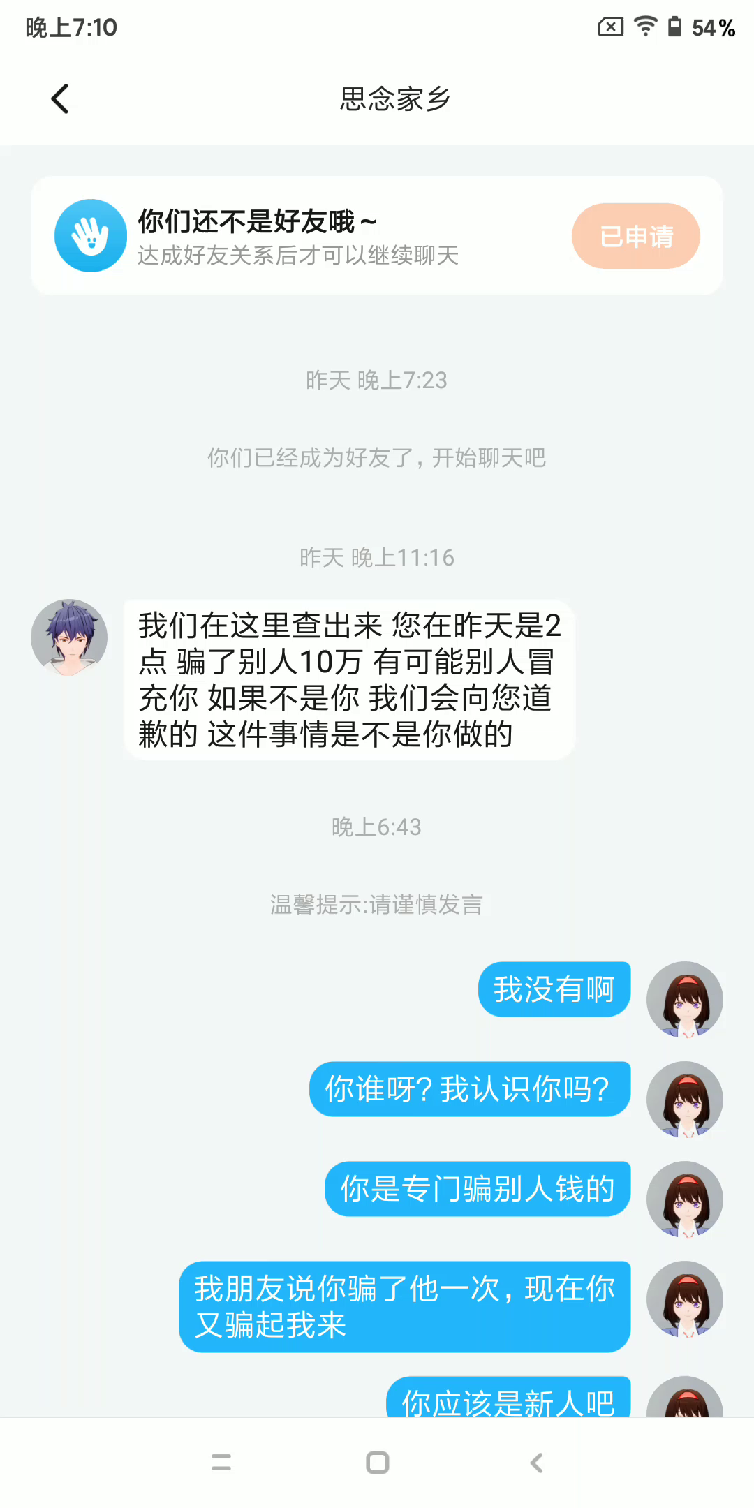 骗子,骗我的钱,而且他还把我删了