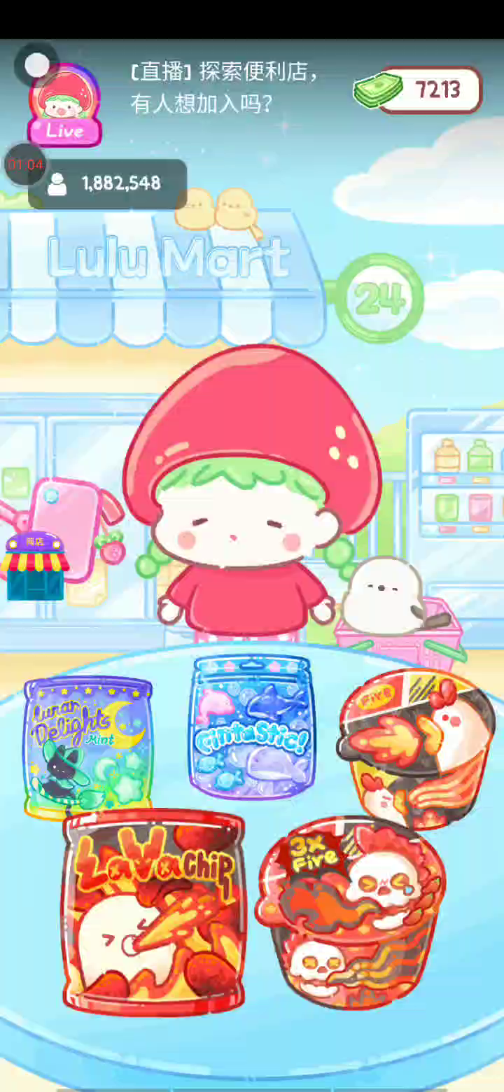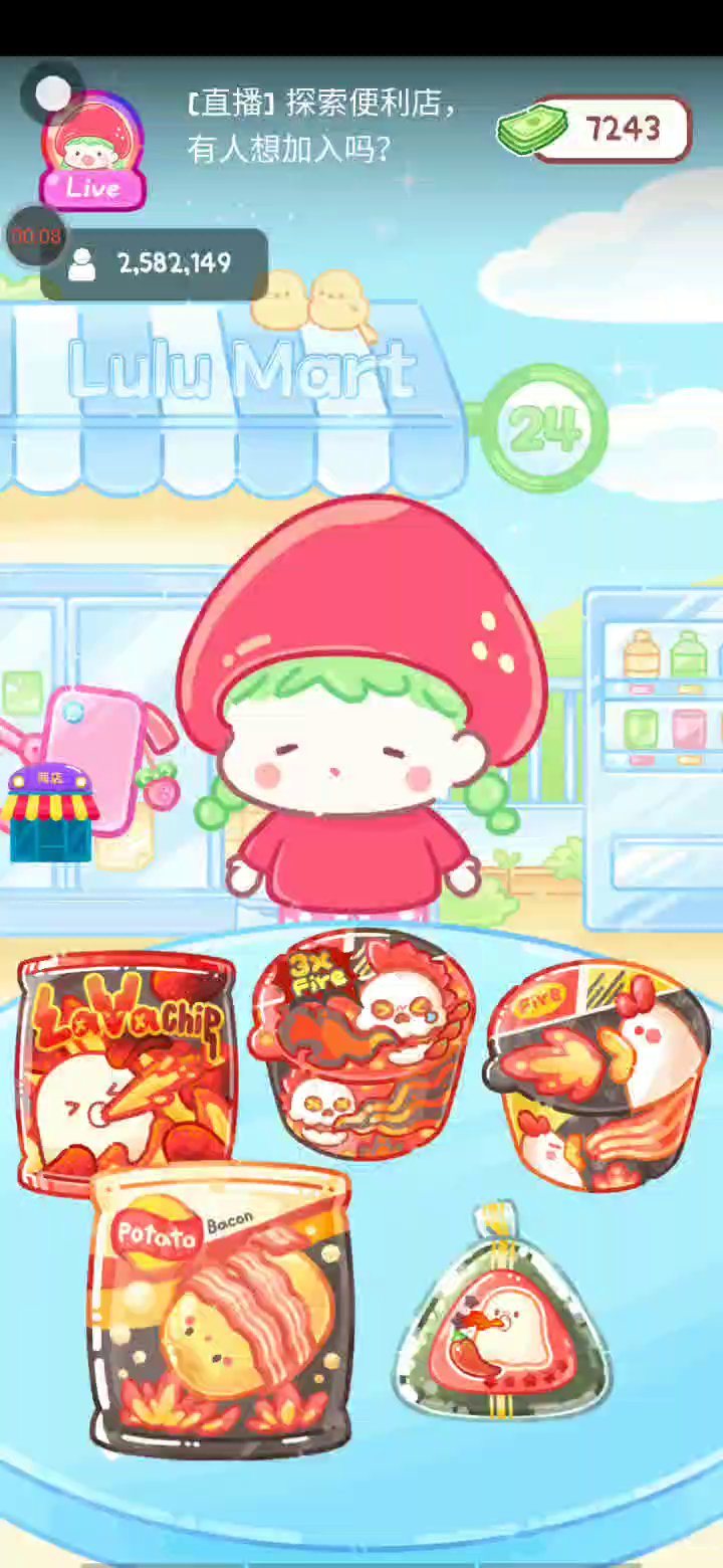 - 冰淇淋摊刚在迷你超市开张了! - 哇 - 高级冰淇淋?!观看广告可获得随机免费一球! - 五种口味?给我最好吃的一个! 制作自己专属的糖葫芦,挑战吃播ASMR吧! 「你进行草莓糖葫芦吃播的话,我就赞助100元。」 「脆口的声音太迷人了(°θ°)」 由于客人都被最近新开的许多糖葫芦店家抢走,曾经号称糖葫芦达人的父母因此卧病在床。 继承父母店面的主角露露开始糖葫芦吃播来宣传店面。 直到成为真正的糖葫芦达人那一天! 「今天我也要开始糖葫芦直播罗!( •o• )」 [串材料] 只有新鲜的水果的话,很难以一名吃播实况主存活下来。还要有松饼、地球软糖、青阳辣椒!利用奇特的材料制作糖葫芦吧。 [裹糖衣] 将材料串满竹签的话,就放进锅子搅动吧。唯有利用达人的秘法,才能裹出又薄又脆的糖衣。 [即时吃播] 咔哒咔哒!今天的吃播也大成功。热烈的聊天内容看起来反应也不错。看来得利用完成观众任务得到的赞助金来买新材料了! 来,准备好了吧?现在就马上挑战成为糖葫芦达人吧!