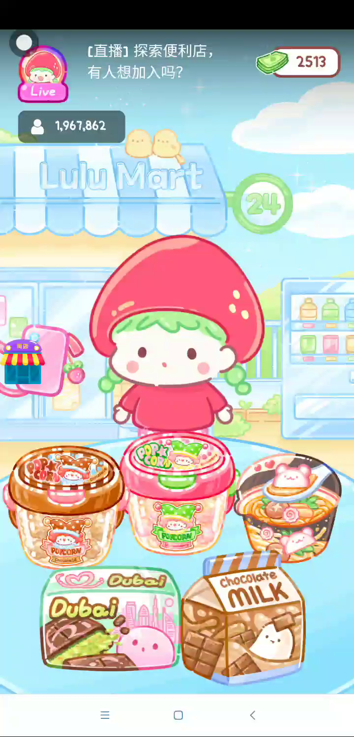 - 冰淇淋摊刚在迷你超市开张了! - 哇 - 高级冰淇淋?!观看广告可获得随机免费一球! - 五种口味?给我最好吃的一个! 制作自己专属的糖葫芦,挑战吃播ASMR吧! 「你进行草莓糖葫芦吃播的话,我就赞助100元。」 「脆口的声音太迷人了(°θ°)」 由于客人都被最近新开的许多糖葫芦店家抢走,曾经号称糖葫芦达人的父母因此卧病在床。 继承父母店面的主角露露开始糖葫芦吃播来宣传店面。 直到成为真正的糖葫芦达人那一天! 「今天我也要开始糖葫芦直播罗!( •o• )」 [串材料] 只有新鲜的水果的话,很难以一名吃播实况主存活下来。还要有松饼、地球软糖、青阳辣椒!利用奇特的材料制作糖葫芦吧。 [裹糖衣] 将材料串满竹签的话,就放进锅子搅动吧。唯有利用达人的秘法,才能裹出又薄又脆的糖衣。 [即时吃播] 咔哒咔哒!今天的吃播也大成功。热烈的聊天内容看起来反应也不错。看来得利用完成观众任务得到的赞助金来买新材料了! 来,准备好了吧?现在就马上挑战成为糖葫芦达人吧!