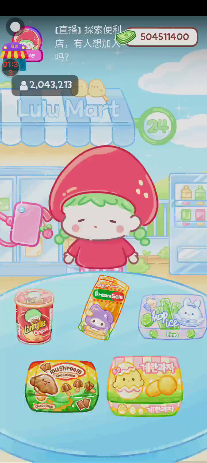 - 冰淇淋摊刚在迷你超市开张了! - 哇 - 高级冰淇淋?!观看广告可获得随机免费一球! - 五种口味?给我最好吃的一个! 制作自己专属的糖葫芦,挑战吃播ASMR吧! 「你进行草莓糖葫芦吃播的话,我就赞助100元。」 「脆口的声音太迷人了(°θ°)」 由于客人都被最近新开的许多糖葫芦店家抢走,曾经号称糖葫芦达人的父母因此卧病在床。 继承父母店面的主角露露开始糖葫芦吃播来宣传店面。 直到成为真正的糖葫芦达人那一天! 「今天我也要开始糖葫芦直播罗!( •o• )」 [串材料] 只有新鲜的水果的话,很难以一名吃播实况主存活下来。还要有松饼、地球软糖、青阳辣椒!利用奇特的材料制作糖葫芦吧。 [裹糖衣] 将材料串满竹签的话,就放进锅子搅动吧。唯有利用达人的秘法,才能裹出又薄又脆的糖衣。 [即时吃播] 咔哒咔哒!今天的吃播也大成功。热烈的聊天内容看起来反应也不错。看来得利用完成观众任务得到的赞助金来买新材料了! 来,准备好了吧?现在就马上挑战成为糖葫芦达人吧!