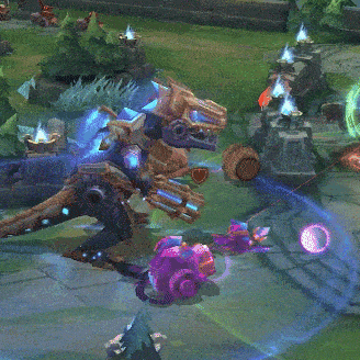 霸龙机甲利用W(2)技能的护盾强化小兵后,敌方难以处理兵线,配合大招拿下一座防御塔,可谓是轻而易举~且后期伤害更高,推塔效率随即提升。