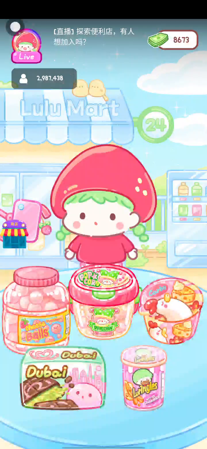 - 冰淇淋摊刚在迷你超市开张了! - 哇 - 高级冰淇淋?!观看广告可获得随机免费一球! - 五种口味?给我最好吃的一个! 制作自己专属的糖葫芦,挑战吃播ASMR吧! 「你进行草莓糖葫芦吃播的话,我就赞助100元。」 「脆口的声音太迷人了(°θ°)」 由于客人都被最近新开的许多糖葫芦店家抢走,曾经号称糖葫芦达人的父母因此卧病在床。 继承父母店面的主角露露开始糖葫芦吃播来宣传店面。 直到成为真正的糖葫芦达人那一天! 「今天我也要开始糖葫芦直播罗!( •o• )」 [串材料] 只有新鲜的水果的话,很难以一名吃播实况主存活下来。还要有松饼、地球软糖、青阳辣椒!利用奇特的材料制作糖葫芦吧。 [裹糖衣] 将材料串满竹签的话,就放进锅子搅动吧。唯有利用达人的秘法,才能裹出又薄又脆的糖衣。 [即时吃播] 咔哒咔哒!今天的吃播也大成功。热烈的聊天内容看起来反应也不错。看来得利用完成观众任务得到的赞助金来买新材料了! 来,准备好了吧?现在就马上挑战成为糖葫芦达人吧!