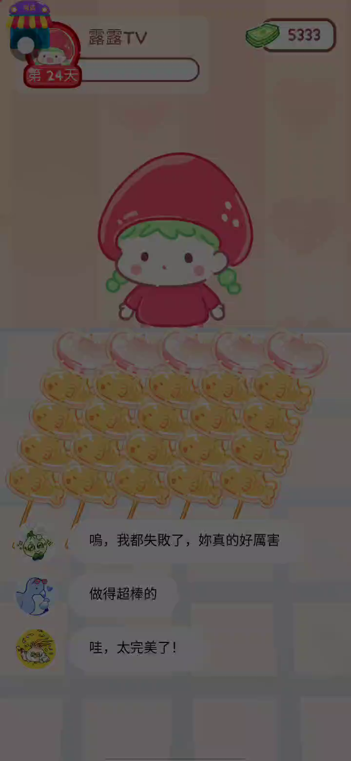 - 冰淇淋摊刚在迷你超市开张了! - 哇 - 高级冰淇淋?!观看广告可获得随机免费一球! - 五种口味?给我最好吃的一个! 制作自己专属的糖葫芦,挑战吃播ASMR吧! 「你进行草莓糖葫芦吃播的话,我就赞助100元。」 「脆口的声音太迷人了(°θ°)」 由于客人都被最近新开的许多糖葫芦店家抢走,曾经号称糖葫芦达人的父母因此卧病在床。 继承父母店面的主角露露开始糖葫芦吃播来宣传店面。 直到成为真正的糖葫芦达人那一天! 「今天我也要开始糖葫芦直播罗!( •o• )」 [串材料] 只有新鲜的水果的话,很难以一名吃播实况主存活下来。还要有松饼、地球软糖、青阳辣椒!利用奇特的材料制作糖葫芦吧。 [裹糖衣] 将材料串满竹签的话,就放进锅子搅动吧。唯有利用达人的秘法,才能裹出又薄又脆的糖衣。 [即时吃播] 咔哒咔哒!今天的吃播也大成功。热烈的聊天内容看起来反应也不错。看来得利用完成观众任务得到的赞助金来买新材料了! 来,准备好了吧?现在就马上挑战成为糖葫芦达人吧!