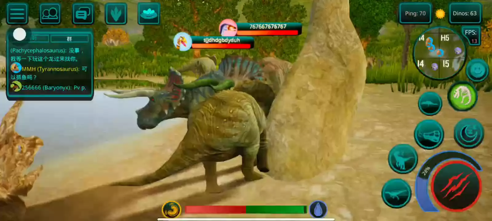 【更新:修复错误,提高稳定性】 恐龙岛是一款以侏罗纪世界为背景的逼真在线恐龙模拟器。 享受各种恐龙、逼真的图形和岛屿大地图。 选择你的恐龙并开始生存。 与您的朋友以及世界各地的玩家一起玩。 游戏中呈现了所有流行的恐龙,例如,从霸王龙、棘龙等食肉动物开始,到三角龙、甲龙等食草动物,游戏中有超过 23 种恐龙,包括飞行和游泳物种,以及所有恐龙。他们中的一些人在逼真的恐龙模拟器游戏中等待着您。