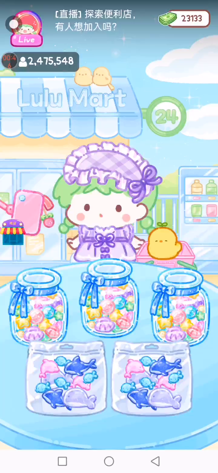 - 冰淇淋摊刚在迷你超市开张了! - 哇 - 高级冰淇淋?!观看广告可获得随机免费一球! - 五种口味?给我最好吃的一个! 制作自己专属的糖葫芦,挑战吃播ASMR吧! 「你进行草莓糖葫芦吃播的话,我就赞助100元。」 「脆口的声音太迷人了(°θ°)」 由于客人都被最近新开的许多糖葫芦店家抢走,曾经号称糖葫芦达人的父母因此卧病在床。 继承父母店面的主角露露开始糖葫芦吃播来宣传店面。 直到成为真正的糖葫芦达人那一天! 「今天我也要开始糖葫芦直播罗!( •o• )」 [串材料] 只有新鲜的水果的话,很难以一名吃播实况主存活下来。还要有松饼、地球软糖、青阳辣椒!利用奇特的材料制作糖葫芦吧。 [裹糖衣] 将材料串满竹签的话,就放进锅子搅动吧。唯有利用达人的秘法,才能裹出又薄又脆的糖衣。 [即时吃播] 咔哒咔哒!今天的吃播也大成功。热烈的聊天内容看起来反应也不错。看来得利用完成观众任务得到的赞助金来买新材料了! 来,准备好了吧?现在就马上挑战成为糖葫芦达人吧!