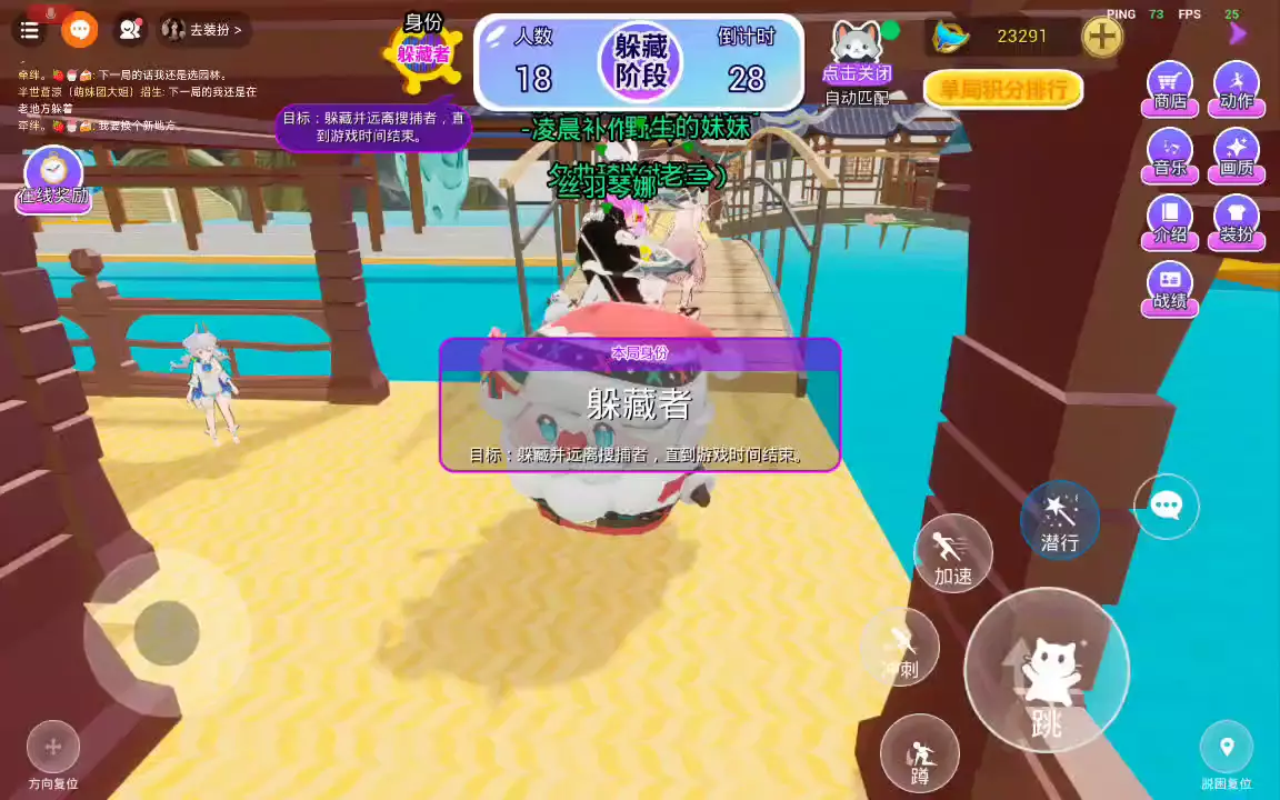 躲猫猫大作战2是一款具有多种玩法的多人躲猫猫类游戏,当前玩法有经典模式、潜行降临、搜捕浪潮。玩家分为2个阵营:躲藏者和搜捕者。躲藏者需要在倒计时结束前存活,搜捕者需要倒计时结束前抓捕所有躲藏者。游戏还内置了超多角色装扮、舞蹈、音乐,快来体验吧!