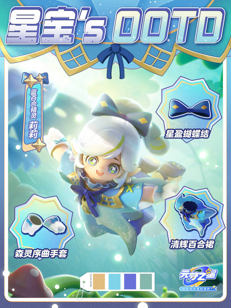 但当她参加舞会时暴风雨来临,星盈蝴蝶结与清辉百合裙令她耀眼夺目,森灵序曲鞋让每一步都绽放蓝色百合花