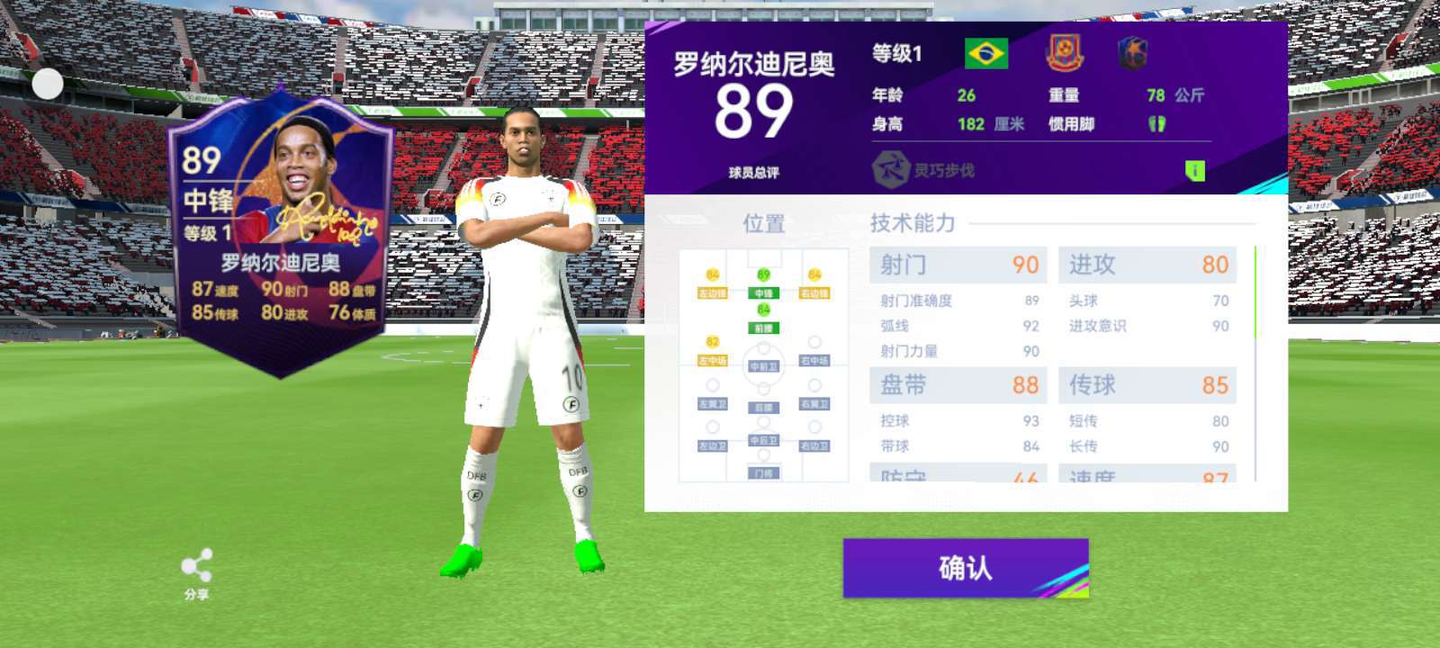 一个80+-93+的联赛自选礼包出了89的联赛小罗