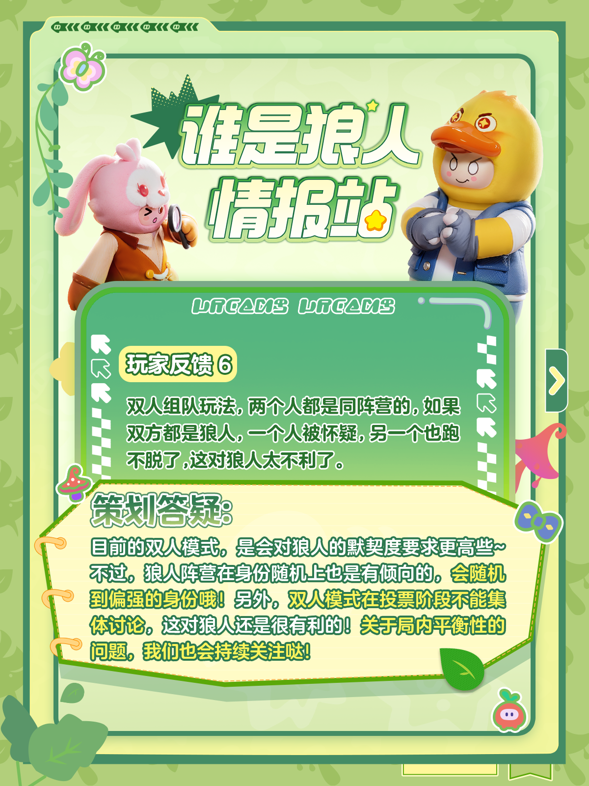 新赛季将至,【谁是狼人】即将上线超多新角色,星宝们也有很多新问题出现,星妹邀请了策划大大来为大家解答,话不多说,快来看看吧~