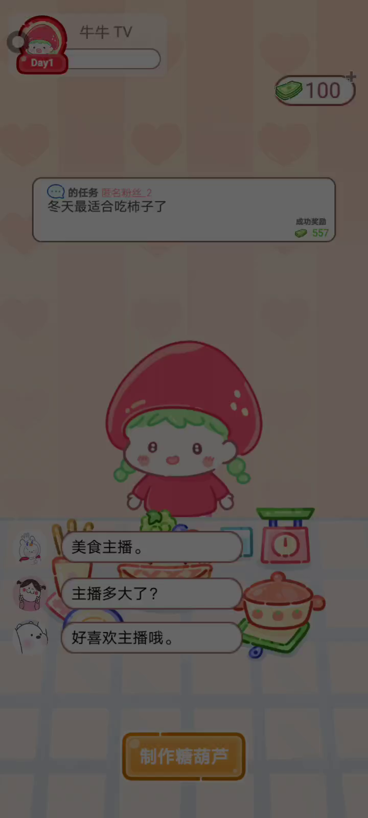 「今天我也要开始糖葫芦直播喽!( •o• )」 「你进行草莓糖葫芦吃播的话,我就赞助100元。」 「脆口的声音太迷人了(°θ°)」 由于客人都被最近新开的许多糖葫芦店家抢走,曾经号称糖葫芦达人的父母因此卧病在床。 继承父母店面的主角露露开始糖葫芦吃播来宣传店面。 直到成为真正的糖葫芦达人那一天!