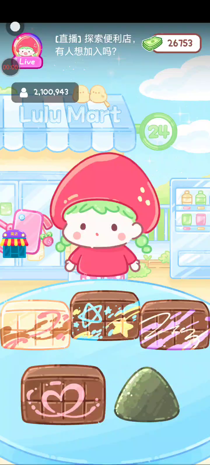 - 冰淇淋摊刚在迷你超市开张了! - 哇 - 高级冰淇淋?!观看广告可获得随机免费一球! - 五种口味?给我最好吃的一个! 制作自己专属的糖葫芦,挑战吃播ASMR吧! 「你进行草莓糖葫芦吃播的话,我就赞助100元。」 「脆口的声音太迷人了(°θ°)」 由于客人都被最近新开的许多糖葫芦店家抢走,曾经号称糖葫芦达人的父母因此卧病在床。 继承父母店面的主角露露开始糖葫芦吃播来宣传店面。 直到成为真正的糖葫芦达人那一天! 「今天我也要开始糖葫芦直播罗!( •o• )」 [串材料] 只有新鲜的水果的话,很难以一名吃播实况主存活下来。还要有松饼、地球软糖、青阳辣椒!利用奇特的材料制作糖葫芦吧。 [裹糖衣] 将材料串满竹签的话,就放进锅子搅动吧。唯有利用达人的秘法,才能裹出又薄又脆的糖衣。 [即时吃播] 咔哒咔哒!今天的吃播也大成功。热烈的聊天内容看起来反应也不错。看来得利用完成观众任务得到的赞助金来买新材料了! 来,准备好了吧?现在就马上挑战成为糖葫芦达人吧!