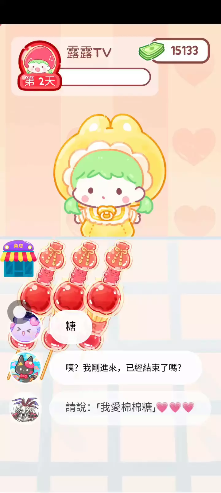 - 冰淇淋摊刚在迷你超市开张了! - 哇 - 高级冰淇淋?!观看广告可获得随机免费一球! - 五种口味?给我最好吃的一个! 制作自己专属的糖葫芦,挑战吃播ASMR吧! 「你进行草莓糖葫芦吃播的话,我就赞助100元。」 「脆口的声音太迷人了(°θ°)」 由于客人都被最近新开的许多糖葫芦店家抢走,曾经号称糖葫芦达人的父母因此卧病在床。 继承父母店面的主角露露开始糖葫芦吃播来宣传店面。 直到成为真正的糖葫芦达人那一天! 「今天我也要开始糖葫芦直播罗!( •o• )」 [串材料] 只有新鲜的水果的话,很难以一名吃播实况主存活下来。还要有松饼、地球软糖、青阳辣椒!利用奇特的材料制作糖葫芦吧。 [裹糖衣] 将材料串满竹签的话,就放进锅子搅动吧。唯有利用达人的秘法,才能裹出又薄又脆的糖衣。 [即时吃播] 咔哒咔哒!今天的吃播也大成功。热烈的聊天内容看起来反应也不错。看来得利用完成观众任务得到的赞助金来买新材料了! 来,准备好了吧?现在就马上挑战成为糖葫芦达人吧!