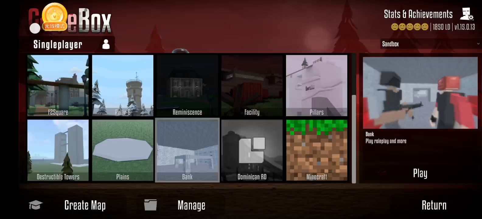 G沙盒仇恨中文版里还有各式各样的游戏元素和玩法让玩家们能够在游戏中任意的玩耍,不管是枪、车、斧头都能够随意生成出来,生成各种各样的敌人来进行战斗,而且还有非常多的地图让玩家们挑选,随心所欲地在这个世界玩耍吧!游戏操作简单,并采用了第一人称的设计,以及逼真的射击音效,玩起来更有代入感,快快下载,你就是新世界的神!
