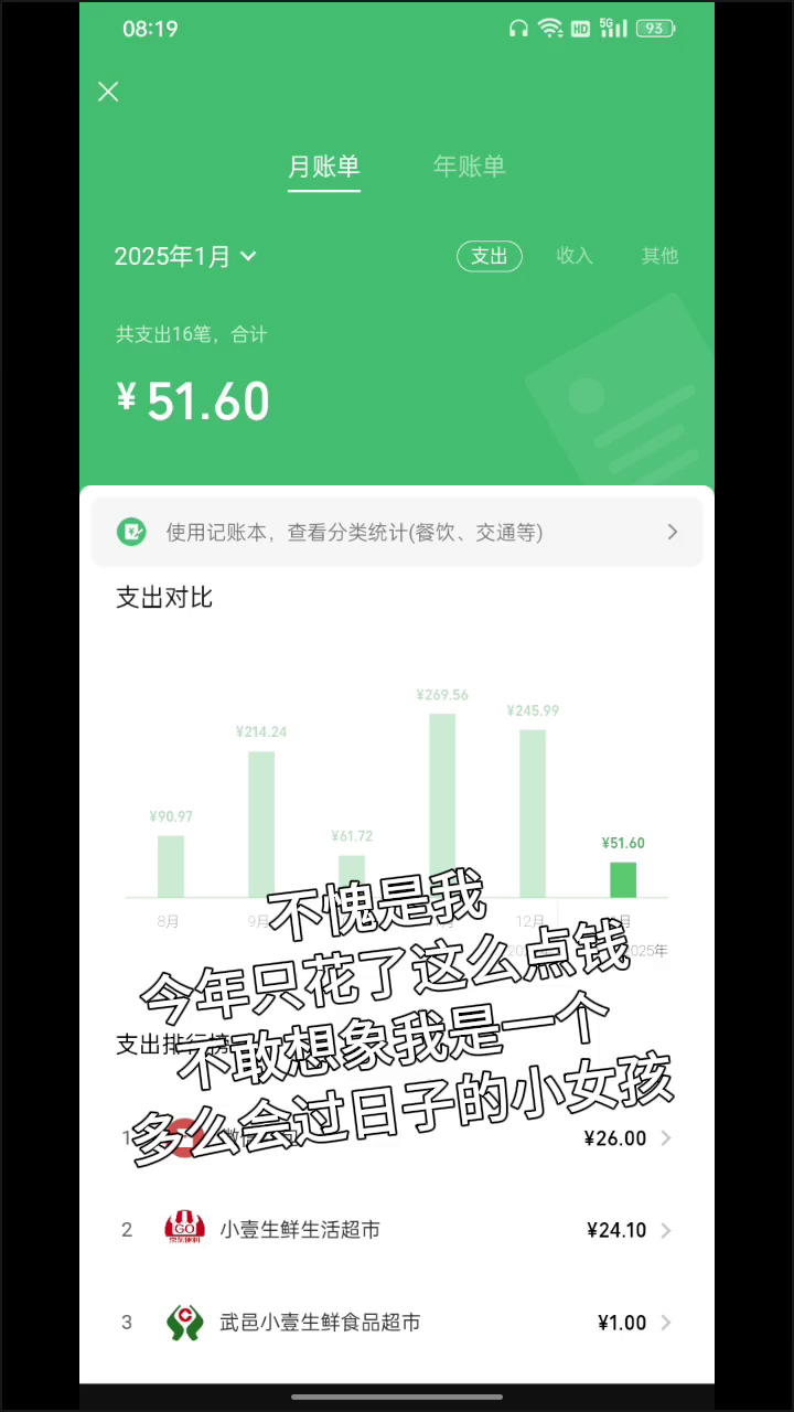 不愧是我 今年只花了这么点钱 不敢想象我是一个 多么会过日子的小女孩