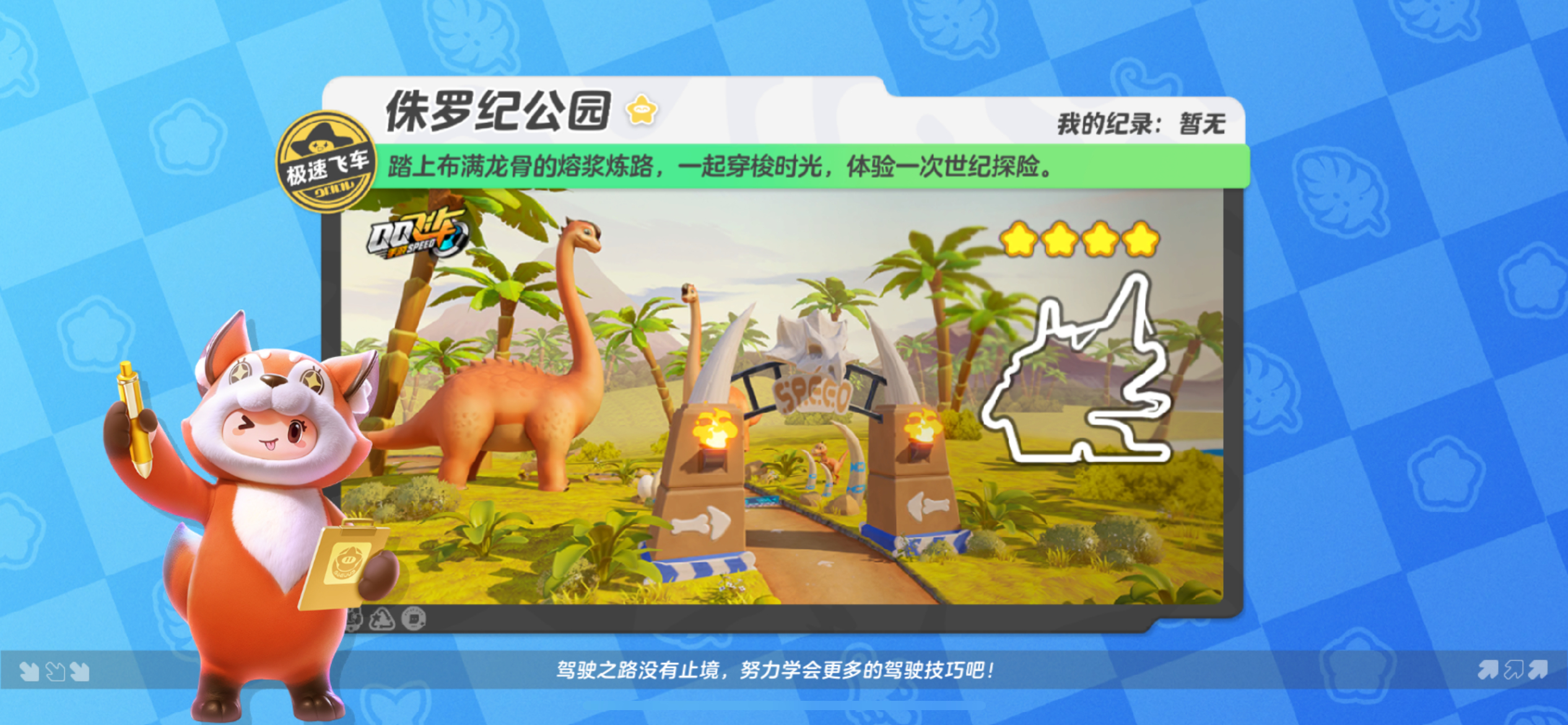 除了要有灵活的技巧通过弯道,星宝们也要注意躲避恐龙的“偷袭”~