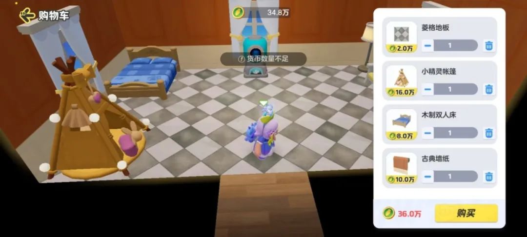 星妹贴心提醒:购买家具需要花费星宝当前的农场币。如果钱不够的话,就无法保存装修方案咯~所以大家在进入装修界面前,一定记得攒满足够的农场币,再去shopping哦~