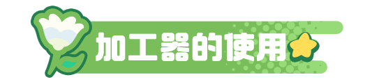 加工器是小屋独有的生产工具。星宝们可以利用加工器,加工仓库中的作物及动物产出哦,得到的加工品会卖出更高的价钱!
