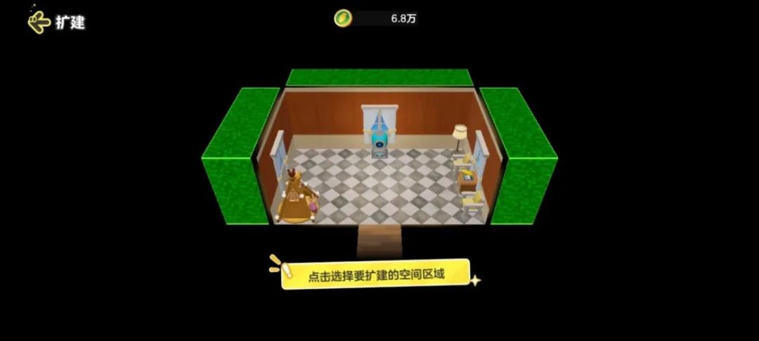 星宝们如果觉得房间小的话,在装修界面点击右上角的扩建按钮,可以从三个方向来拓展你的小屋空间,拥有属于你的大house!