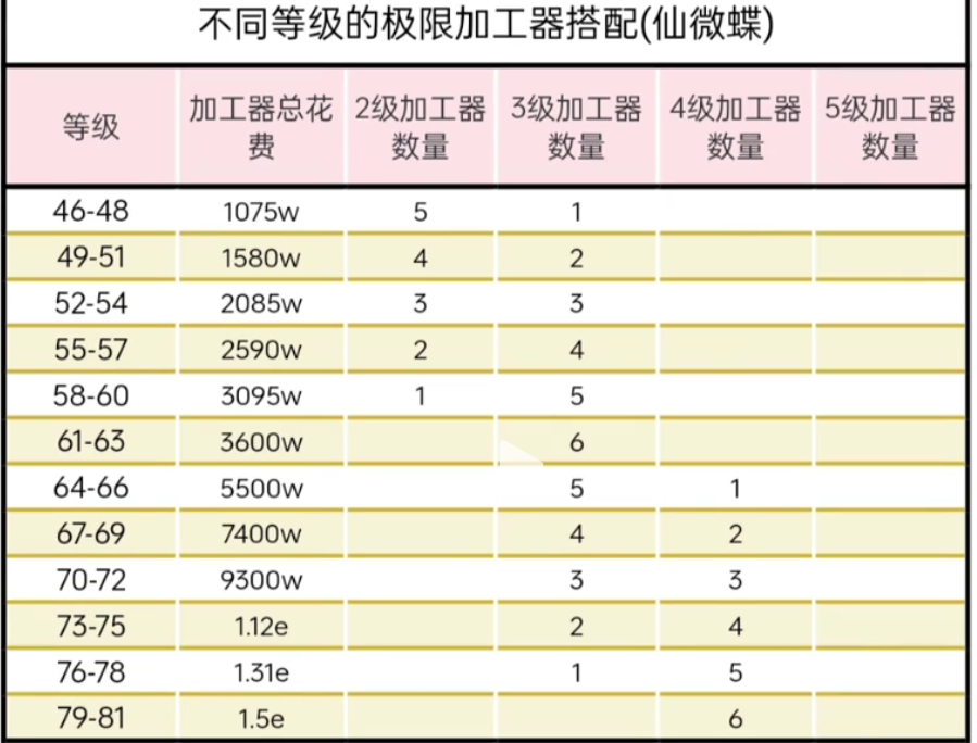 星妹也特意找来了农场大神星宝@仙微蝶,向星宝们分享不同等级加工器极限搭配方案,方便星宝们后续使用哦~