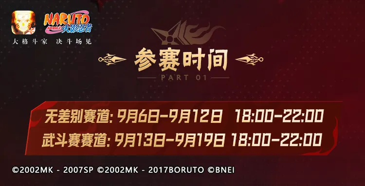 9月6日,游戏内忍者大赛预选赛阶段正式开启!预选赛阶段共历时14天,无差别赛道比赛将在9月6日-9月12日18:00-22:00进行,武斗赛赛道比赛则在9月13日-9月19日18:00-22:00进行。