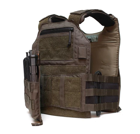 防御方面,DCS兼容软硬护甲,其前后板中均可插入大型防弹插板,并能够携带6x6或6x8的侧板;即使在没有插板的情况下,使用者也可以独立使用软质装甲,以获得NIJ 3A级的防弹能力。