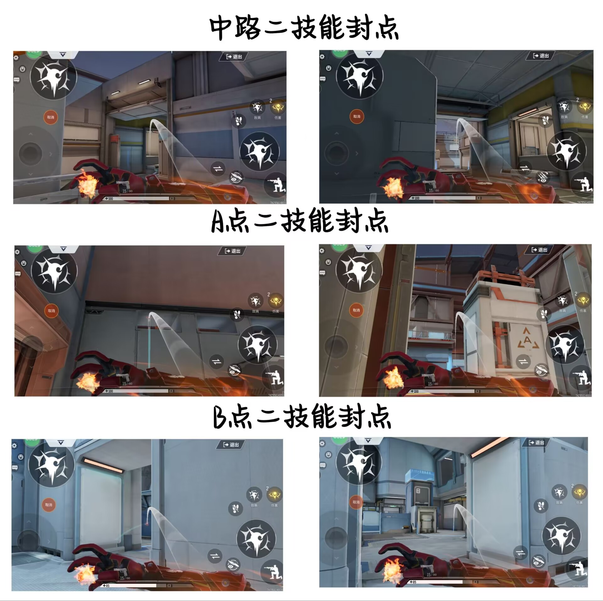 至于剩下的AB点位,其实本质就是用二技能去压迫点位中侧面或角落我们不好攻击到的敌人,这样子就能省去进点后被围攻而不知所措的几率。