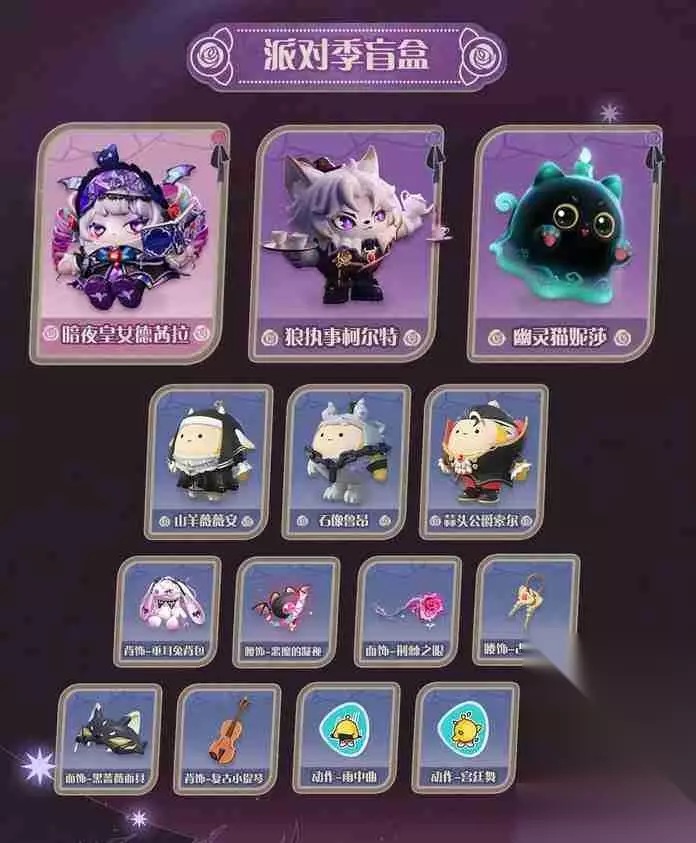 S19圆月哥特派对季将于9月6日开启,本次曝光暗夜皇女德茜拉、狼执事柯尔特、幽灵猫妮莎的外观设计思路,角色融入哥特文化元素,还有配套配饰,将开启全新绮幻故事。