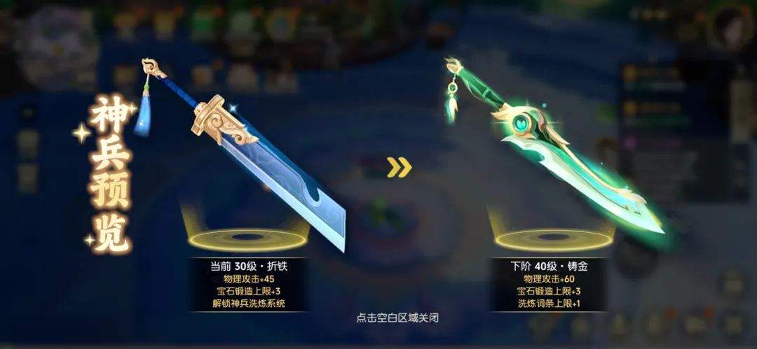 不仅如此,神兵还可以进行洗炼,过洗炼,可以额外增加神兵的基础属性和词条,具体数值与神兵等级有关。