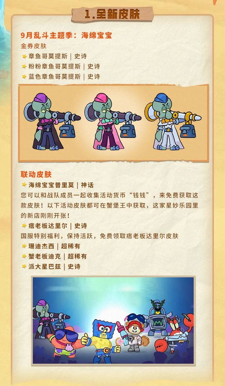 《荒野乱斗》将与经典动画《海绵宝宝》联动;推出全新海绵宝宝主题季!