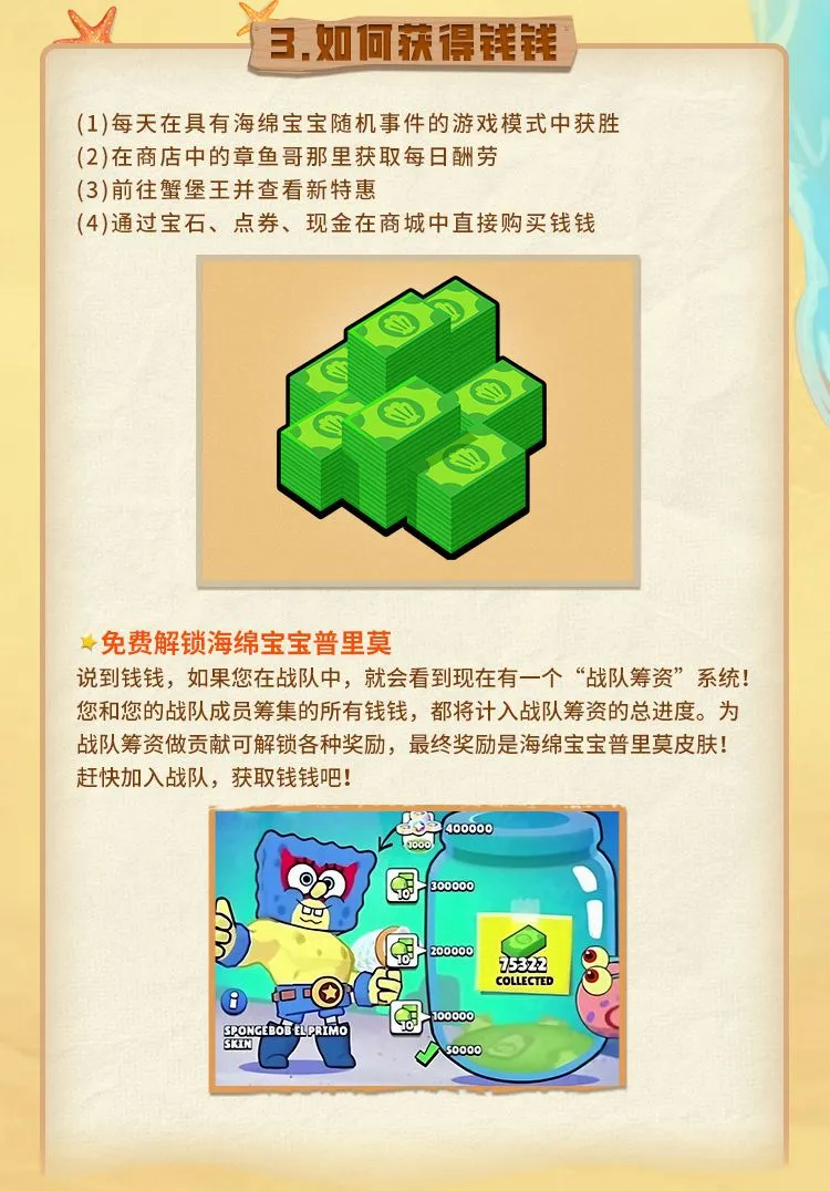 在海绵宝宝活动期间,还有专属活动货币【钱钱】,通过【钱钱】可购买强化道具,及联动皮肤。
