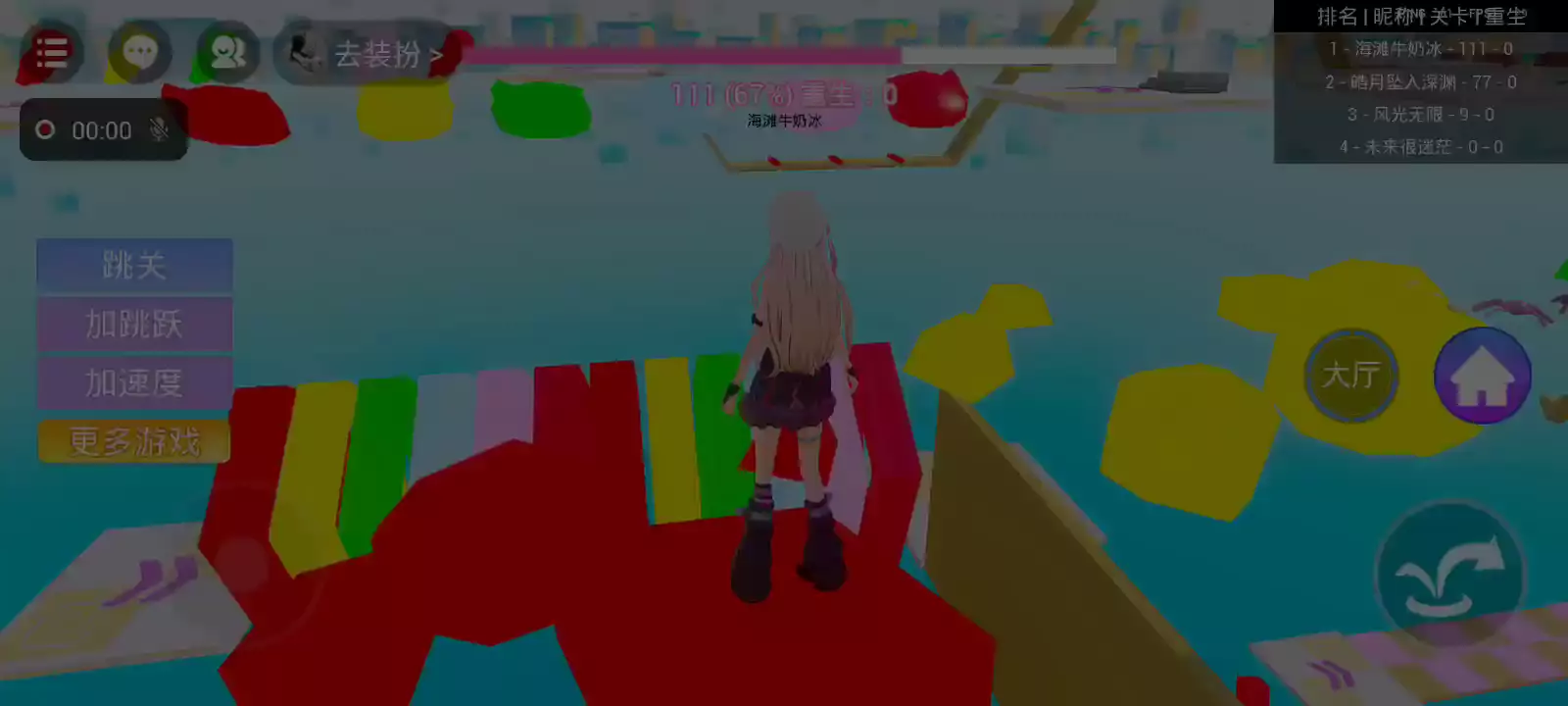 欢迎来到《炫彩霓虹跑酷》,重生后回到大厅,可以进入后面的关卡。