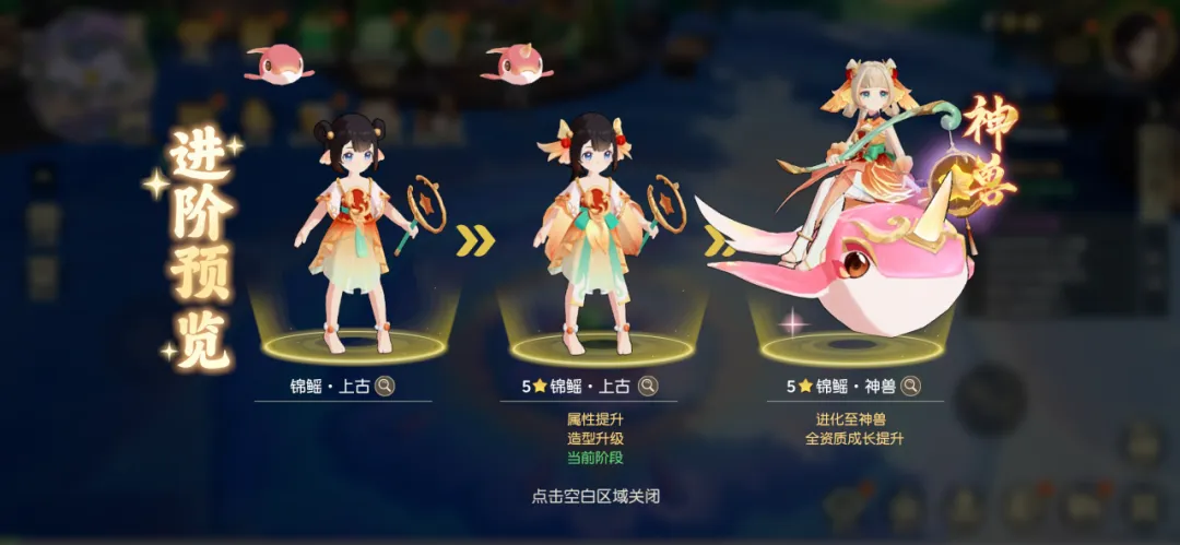 前期的契灵培养资源,尽量倾斜于锦鳐:上面推荐的首充契灵买来是提升星级爬塔的,不是让你养的!从公众号写的来看,锦鳐后续可以进化成神兽,前期的契灵资源还是拉满给锦鳐最好,毕竟平民前期也就可以养那么1、2只宠物。